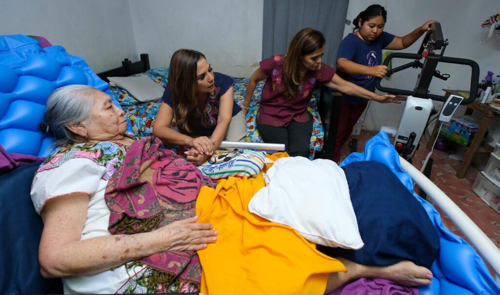 “Venimos a entregarte tu grúa para que te puedas mover mejor, te van a ayudar a moverte y que no estés tanto tiempo en la cama. Queremos saludarte, darte un beso y decirte que te queremos y que vamos a estar muy pendientes. Aquí estoy para ti”, le dijo la Gobernadora