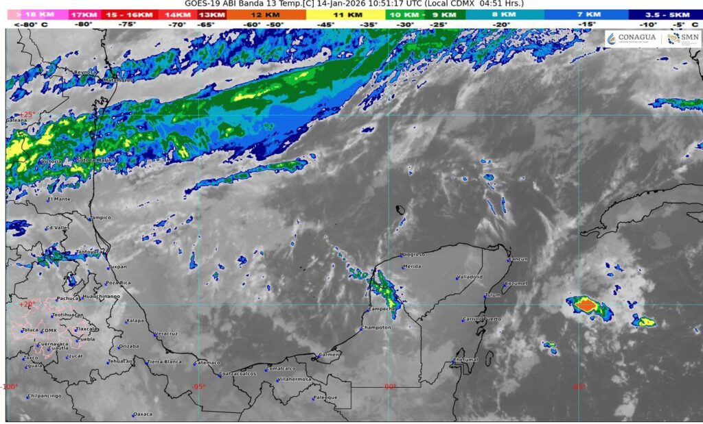 1.- Sistema de alta presión localizado sobre el golfo de México, mantendrá flujo de viento fresco del norte sobre la península de Yucatán, ocasionará sobre Quintana Roo cielo parcialmente nublado, lluvias con intervalos de chubascos (acumulados de 5 a 25 mm). Ambiente caluroso a templado durante el día y fresco al amanecer principalmente en las zonas rurales del estado. Viento con rachas de 40 km/h sobre las zonas de costa del estado. se prevén bancos de niebla en zonas rurales, urbanas y tramos carreteros.