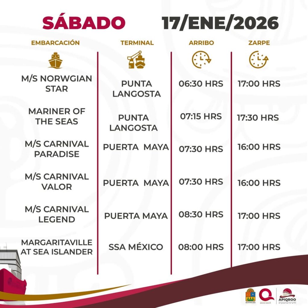 Arribo de crucerosÚltimas Noticias ARRIBO DE CRUCEROS A COZUMEL 17 de enero de 2026 administrador SABADO 17 DE ENERO DE 2026